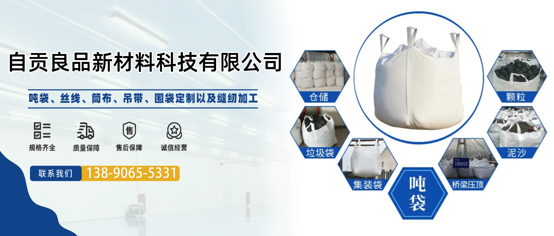 公司簡介 自貢良品新材料科技有限公司位于自貢市貢井區(qū)航空產(chǎn)業(yè)園B4-01-5地塊。成立于2020年4月,占地面積18余畝,生產(chǎn)車間面積約6000平米,目前一線員工百余人。我們專注于集裝袋的研發(fā)、設(shè)計、生產(chǎn)。產(chǎn)品包括圓形集裝袋、方形集裝袋、拉筋集裝袋、托盤袋、敞口集裝袋等各種定制集裝袋。公司秉持著誠信、創(chuàng)新、分享、拓展的價值觀,為客戶提供系統(tǒng)的包裝解決方案與服務(wù)。 業(yè)務(wù)領(lǐng)域 作為集裝袋行...